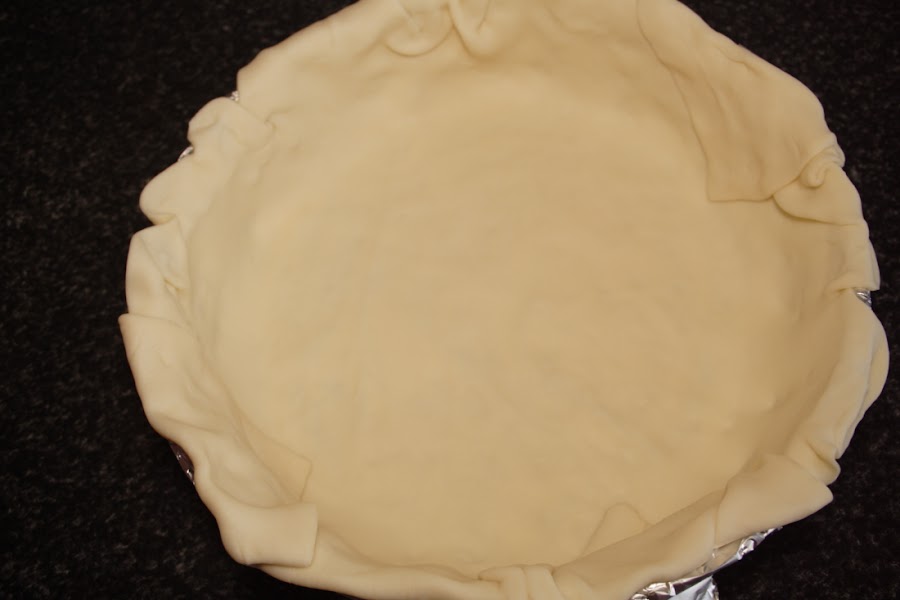 Os confieso "un secretito": Como no he encontrado ni pasta quebrada ni brisa, lo he hecho con esta masa. Me dí cuenta de que era rectangular cuando la abrí (ya sé que lo pone), lo que hice fue estirarla un poco con el rodillo para que me cubriera el molde redondo y las puntas sobrantes las metí hacia dentro del molde, para no desperdiciar nada.
