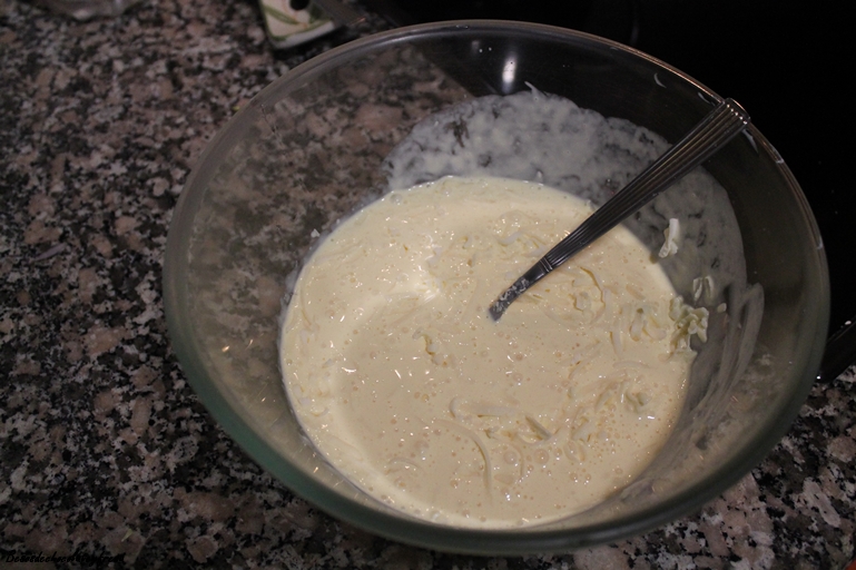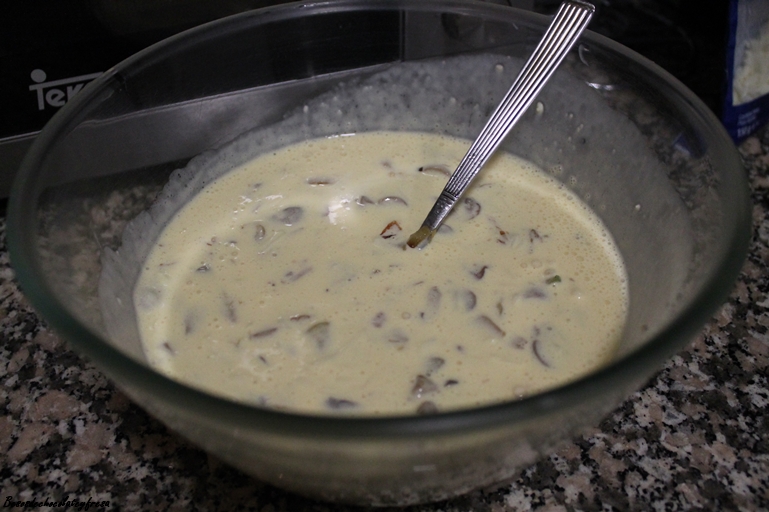 In a bowl mix the cream with grated cheese, three eggs and mushrooms. Then add the vegetables that we already previously lightly and season.