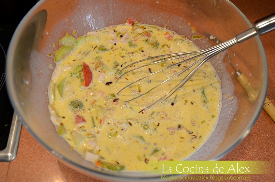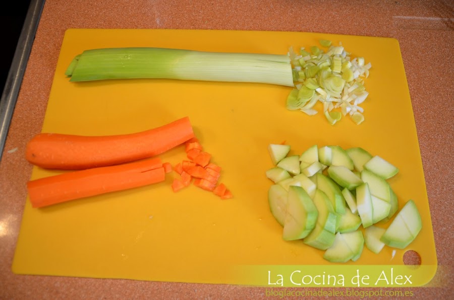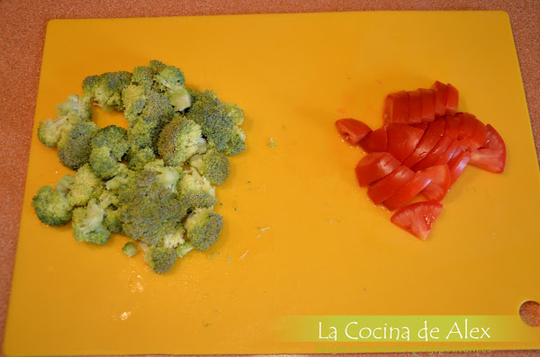 Mientras se hace el hojaldre picamos todas las verduras al gusto, es decir, yo deje tanto el calabacín, brócoli y tomate en trozos no muy pequeños para luego encontrárnoslo al comer.