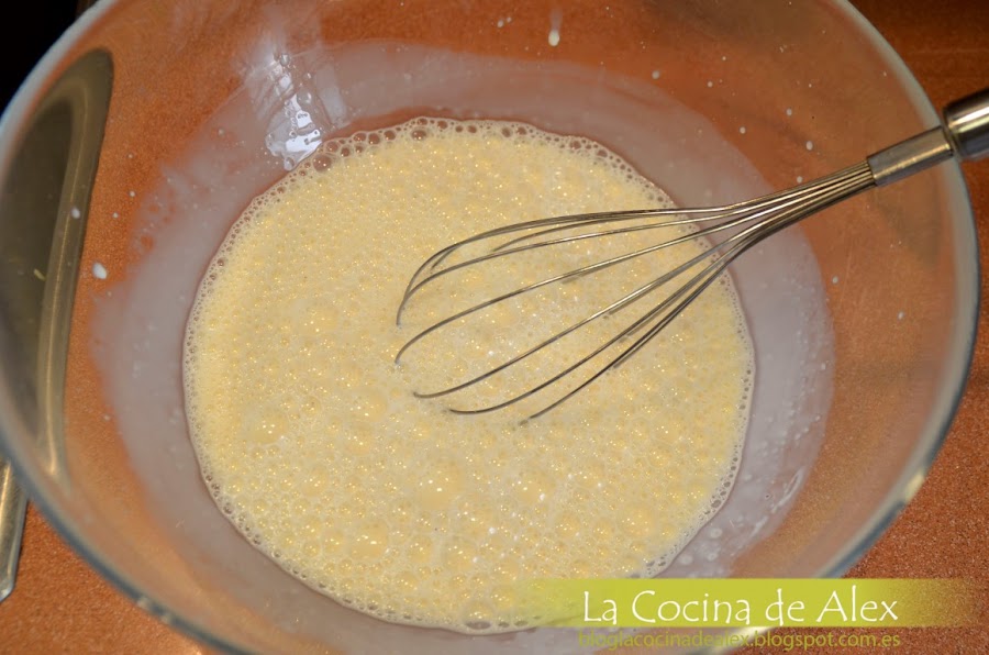 En un bol ponemos los dos huevos, la nata (crema de leche) y la leche y batimos todo junto hasta que incorporar bien los tres ingredientes.