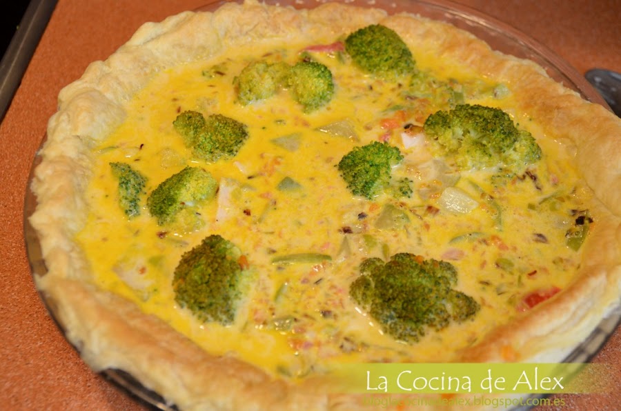 Por ultimo añadimos la verdura a la mezcla que hemos hecho junto con el pavo troceado y esta mezcla la ponemos en la base de hojaldre que hemos horneado al principio. Para que quede mas "presentable" podeis poner los ramilletes de brócoli por encima de toda la mezcla o incluso poner si os gusta un poco de queso rallado. Horneando de nuevo todo junto a 180º durante 20-25min o hasta que se cuaje, esto lo comprobaremos con la ayuda de un palillo o un cuchillo fino.