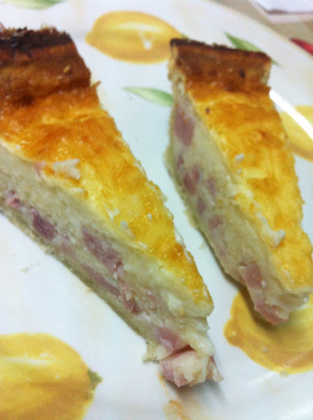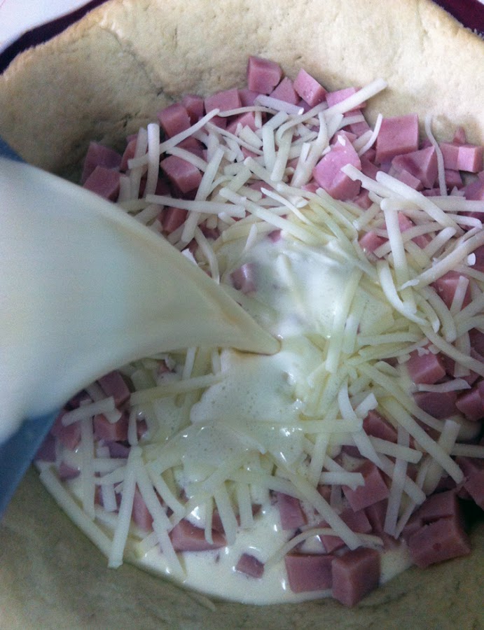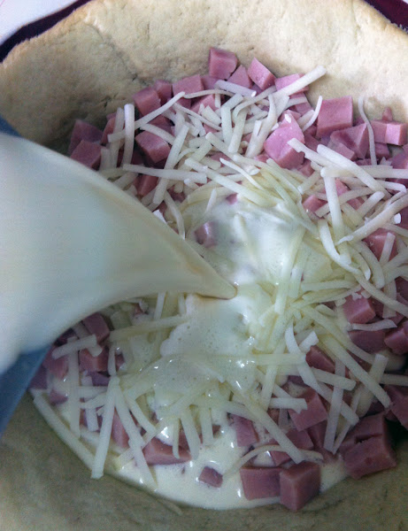 Otras veces hago la bechamel tal y como os indicaba pero no le añado el queso, se lo incorporo con el bacon, que es lo que hice en este caso al hacerla con el queso de las pizzas...En fin, como podéis ver, la opción del relleno lo dejo a vuestra elección,ya que la Quiche es ideal como receta de aprovechamiento.