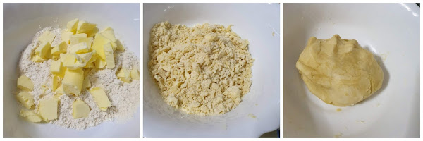 Colocamos la harina y la mantequilla en cubitos, en un bol y vamos mezclando con la punta de los dedos, desmigando la mantequilla junto con la harina, sin usar la palma de la mano para que no se ablande demasiado, nos tiene que quedar como si fuera arenilla en ese momento agregamos el huevo, el agua la sal y pimienta y trabajamos hasta que podamos formar una bola, sin amasar en exceso
