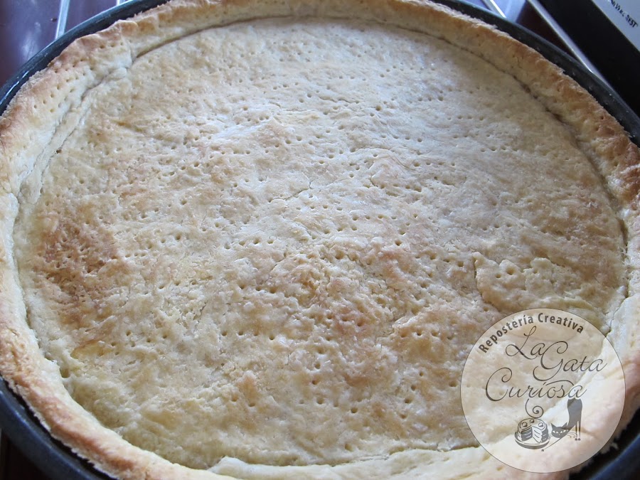 Para preparar la masa pondremos la harina con la sal en cuenco grande, con un cuchillo partimos en trocitos la mantequilla que tiene que estar bien fría, con dos cuchillos vamos mezclando y troceando la mantequilla con la harina, cuando ya la tengamos hecha trocitos muy pequeños, añadimos el agua fría y mezclamos con la punta de los dedos lo justo para que podamos hacer una bola, liamos la bola en papel film y la dejamos reposar en la nevera una hora como mínimo, pasado este tiempo estiramos la masa y forramos un molde para tarta desmoldable, lo mejor es forrar la base con papel sulfurizado, pinchamos toda la base con un tenedor, ponemos otro papel encima y colocamos algo de peso para que la masa no suba al cocer en el horno, lo ideal son una bolas cerámicas que distribuyen bien el calor, pero en su defecto podemos poner garbanzos. Horneamos primero unos 15 minutos a 190-200º C, como siempre con el horno previamente calentado, luego sacamos del horno y quitamos el peso y volvemos a poner hasta que veamos que la masa empieza a tomar un color dorado, sacamos del horno y reservamos