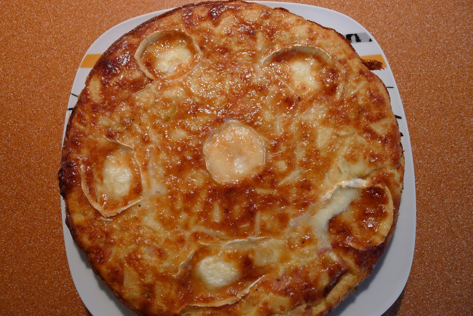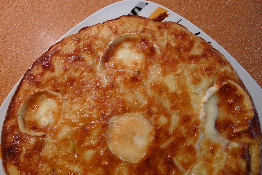 La receta la saque del blog de Clemenvilla: Bocadosdecielo,que seguro muchos conoceis,aunque yo la he tuneado un poquito y aproveche unos restos de jamon cocido y queso de cabra que habia por el frigo.