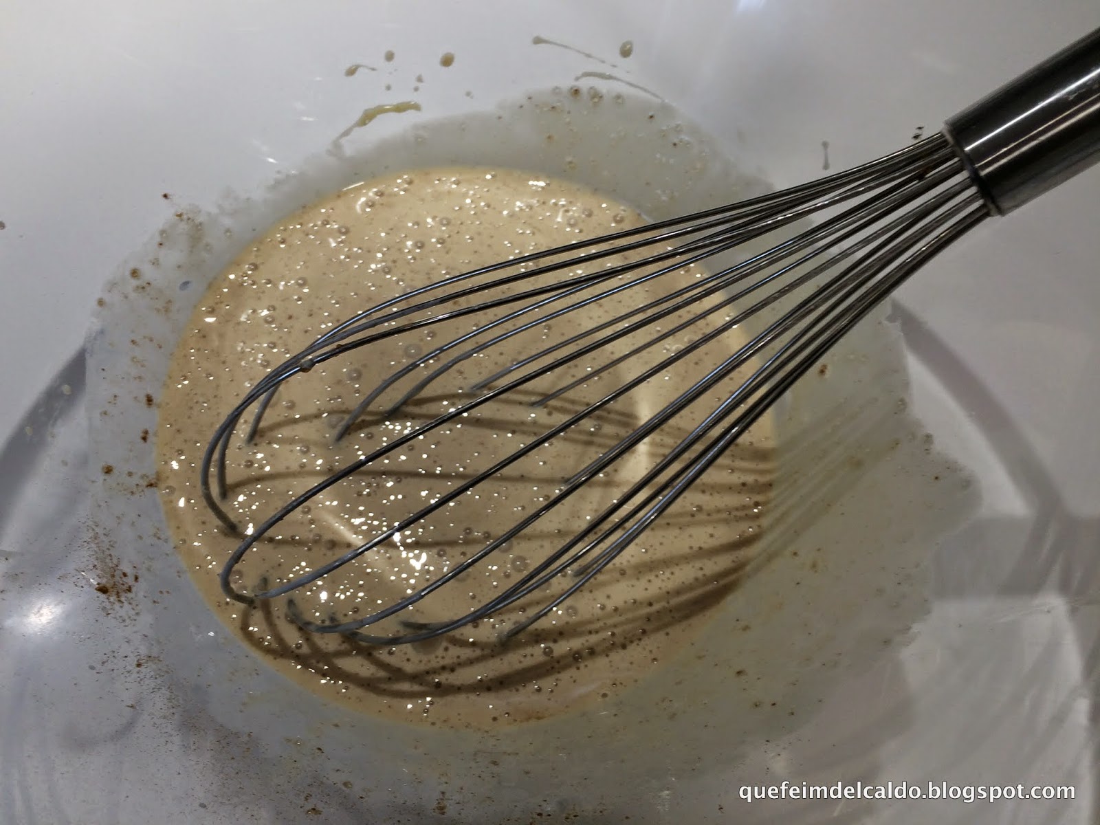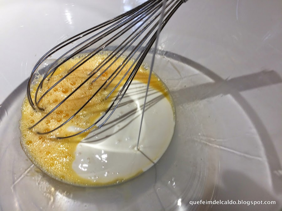 Incorporamos la nata (crema de leche) y volvemos a batir.