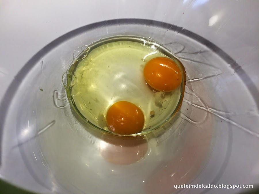 Colocamos dos huevos en un bol, batimos hasta blanquear.