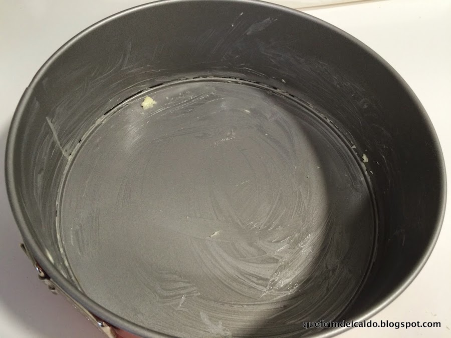 En primer lugar cogemos un molde desmontable, lo embadurnamos con mantequilla.