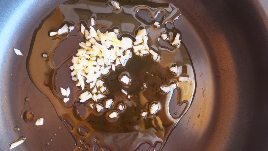 5. Calienta un chorrito de aceite en una sartén y dora los ajos picados o machacados. Cuando estén dorados añade la quinoa remueve y aparta del fuego.