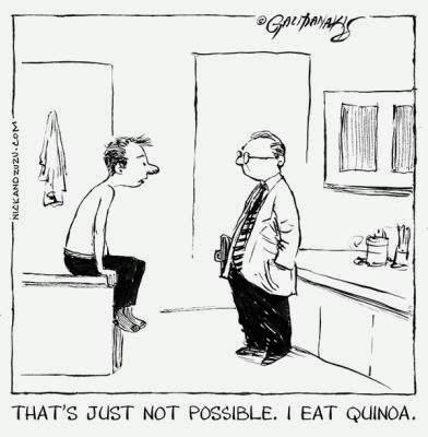 La verdad es que razones no le faltan al pseudocereal para estar en la cresta de la ola. Como ya comenté en la entrada sobre las hamburguesas de quinoa, nutricionalemente hablando, es una de las mejores cosas que puedes llevarte a la boca. La FAO (Organización de las Naciones Unidas para la Alimentación y la Agricultura) le dedicó el año pasado entero y llegó a afirmar que: "La Quínoa posee el balance de proteínas y nutrientes más cercano al ideal de alimento para el ser humano". La quinoa provee la mayor parte de sus calorías en forma de hidratos complejos, aporta 16 gramos de proteínas por cada 100 gramos y 6 gramos de grasa en su mayoría insaturadas. Ácidos omega 6, omega 3, potasio, magnesio, calcio, fósforo, hierro y zinc, vitaminas del complejo B en cantidades apreciables y vitamina E con función antioxidante. (Vitonica) Lo tiene todo.