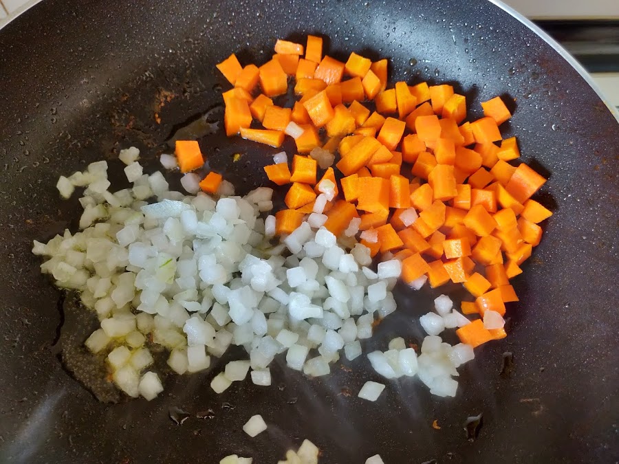 Empezaremos cocinando a fuego muy bajo la cebolla y la zanahoria.
