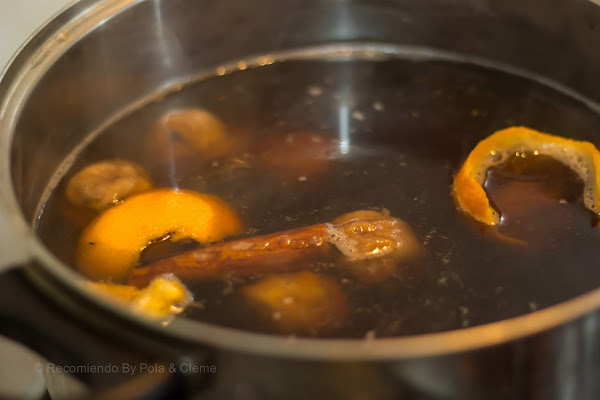 -canela en palo, esencia de vainilla y cáscaras de naranja