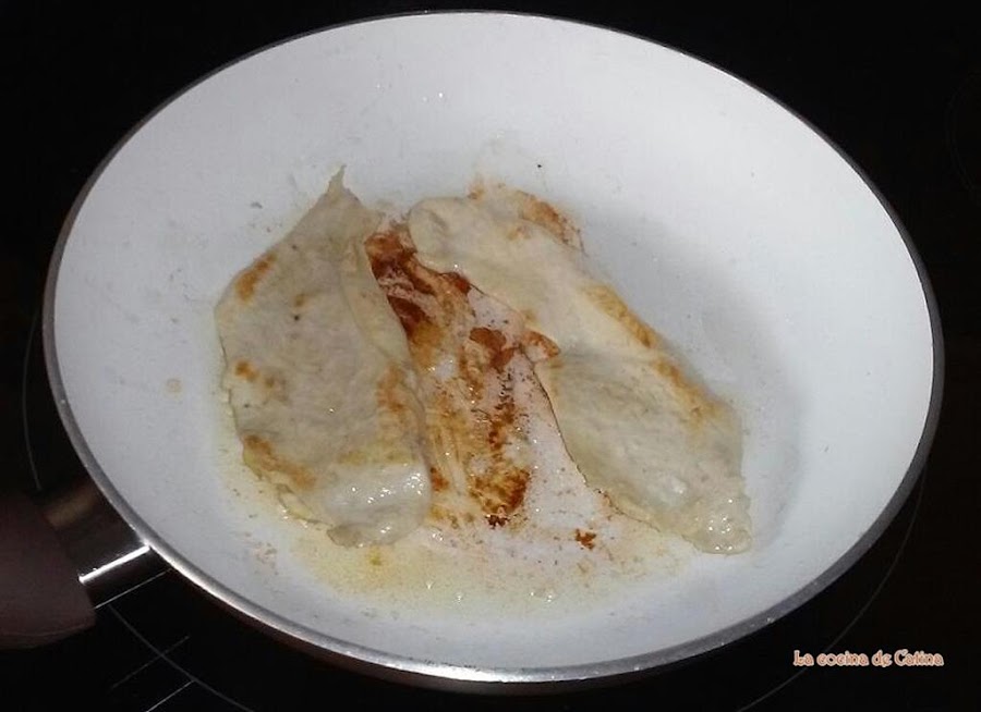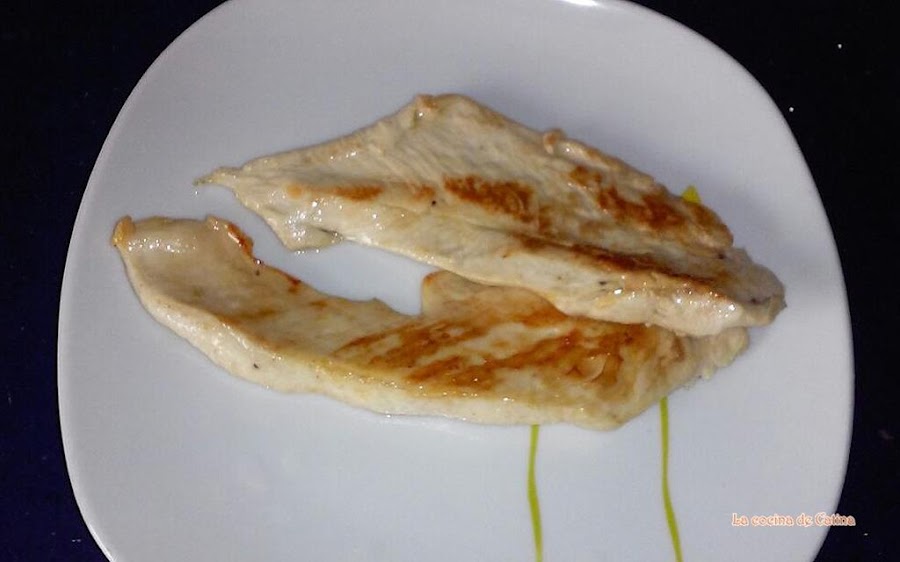 Cortamos la pechuga en filetes y la hacemos a la plancha.