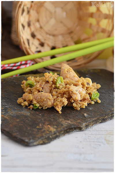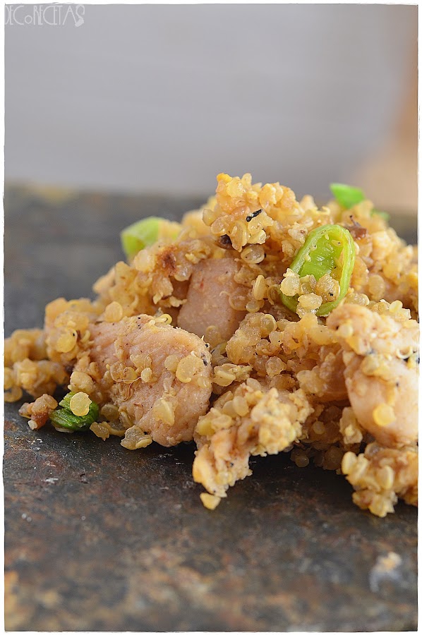 Esta receta suele ser realizada con arroz blanco pero puesto que estoy sustituyendo el arroz por la quinoa en muchas de mis preparaciones, probamos nuevas versiones de realizar distintas recetas