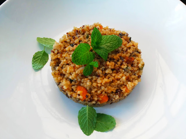 Termina agregando la quinoa al sofrito. Remueve bien. Sirve.