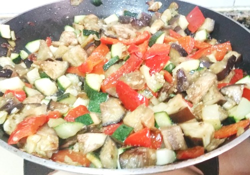 y dejarla pochar a fuego lento hasta que esté transparente… luego incorporar la berenjena,