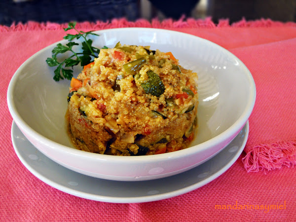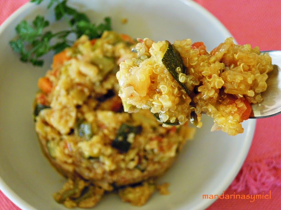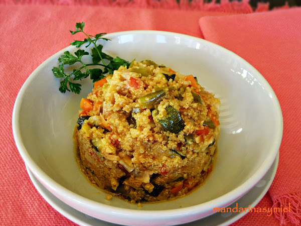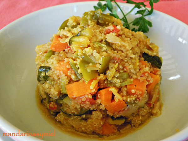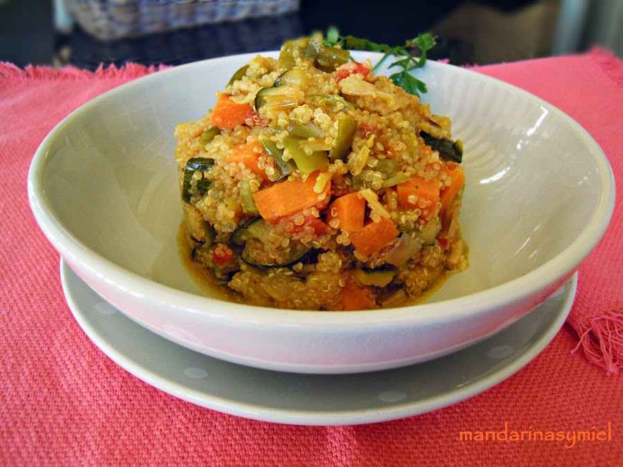 Después de guardarme varias de las recetas de Laura me decidí por la quinoa con verduras, porque junto a la ensalada de quinoa, es uno de los platos con este cereal que más suelo hacerme. Pincha en el enlace para ver la quinoa de verduras de Laura.