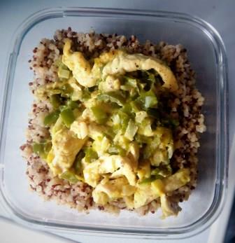 Receta de quinoa y trigo bulgur con pollo y salsa de curry