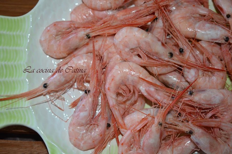 Ponemos a calentar agua con un puñado de sal y un par de hojas de laurel. Cuando empieza a hervir, echamos el marisco y en el momento en que el agua vuelve a hervir de nuevo, apagamos el fuego y ponemos la quisquilla a enfriar sobre agua con un poco de sal y cubitos de hielo, de esta manera cuando esté completamente fría será más fácil desprenderla de la piel.