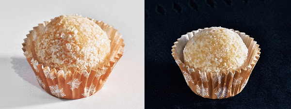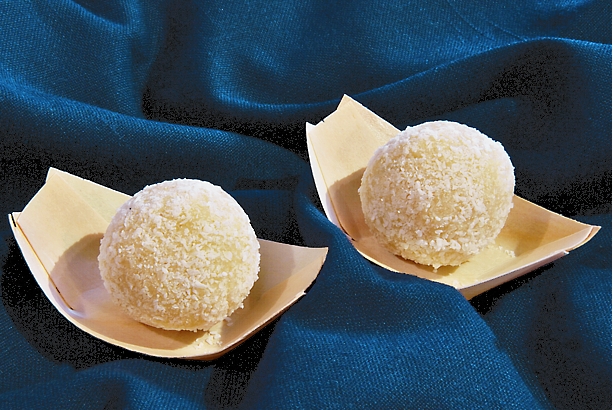 Damos forma a las bolitas, más o menos como si estuviéramos haciendo albóndigas, y las "rebozamos" en coco rallado, o en azúcar glas, o unas cuantas en cada, como se prefiera.