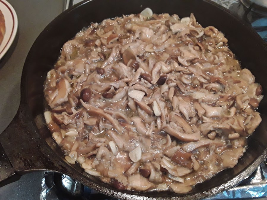 seguidamente echaremos las setas sin el agua, echaremos sal al gusto y echaremos medio vaso de agua,
