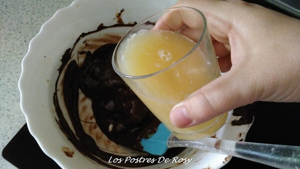 - Para la cobertura fundimos el chocolate en un "baño maría", le agregamos la esencia de vainilla y mezclamos bien.