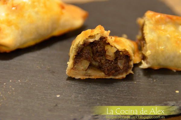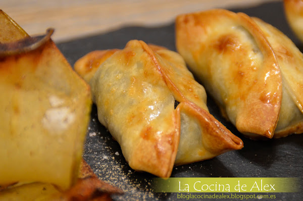 Una vez montadas las "empanadillas" y las ponemos sobre una placa de horno con papel. Si queréis las podéis pintar con huevo batido o no, os van a salir igual de ricas. Y horneamos unos 15-20 minutos o hasta que estén doradas y crujientes.