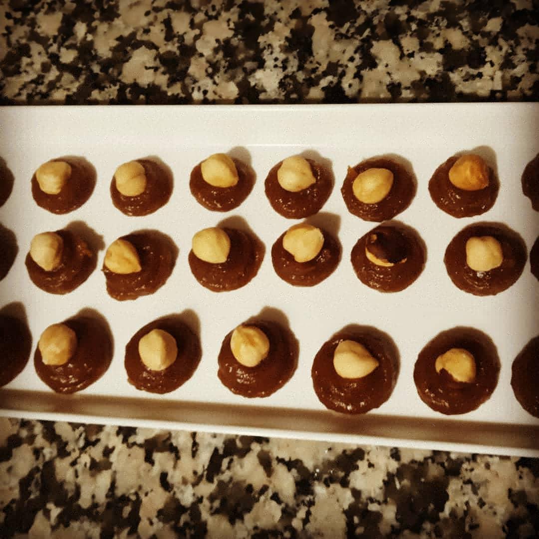 Con ayuda de una manga pastelera escudillar un poco de masa, colocar la avellana y cubrir con la masa.