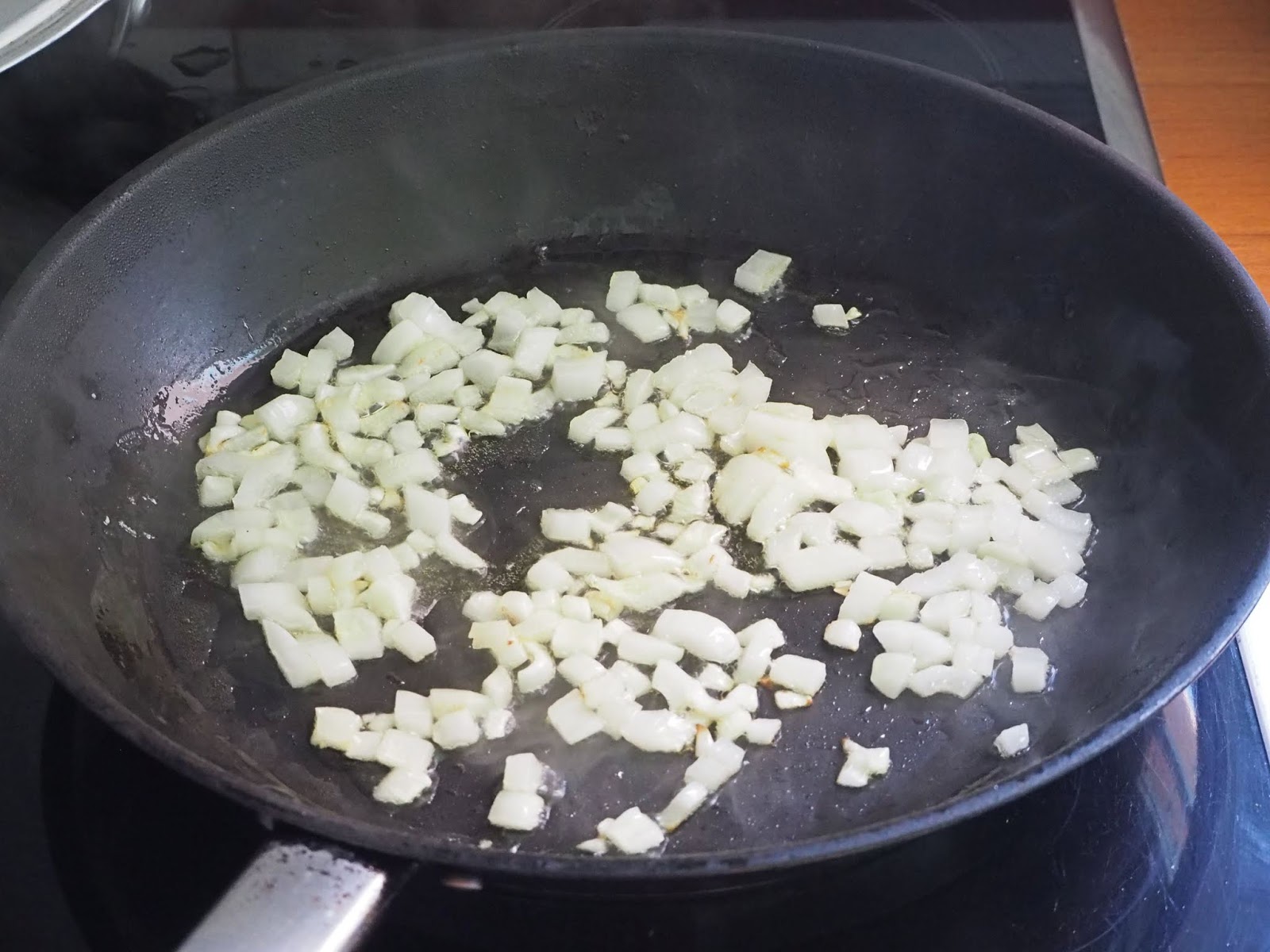 - En una sartén con un poco de aceite caliente ponemos a dorar la cebolla picada.