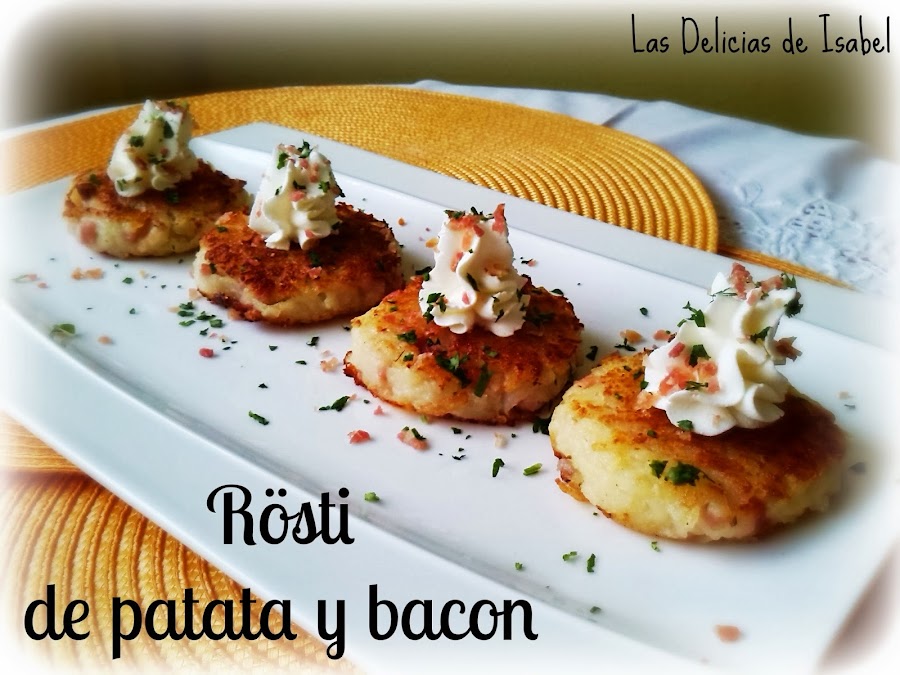 Buenos días!!!! No es habitual que ande por aquí un domingo pero la ocasión lo merece y ahora veréis porqué. La receta que traigo es sencilla aunque un pelín laboriosa. No es difícil de preparar y el resultado es delicioso por lo que merece la pena gastar un poco de nuestro tiempo en ella. Se trata de unos Rösti, un plato hecho a base de patata muy popular en la cocina suiza.