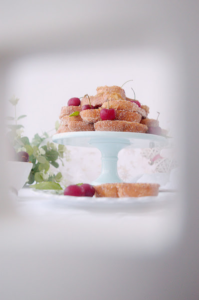 In a bowl, mix sugar and cinnamon and dust cool slices.