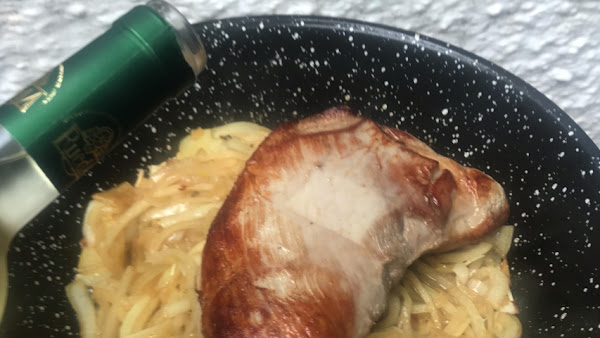 Incorpora el vino blanco y deja que evapore el alcohol.