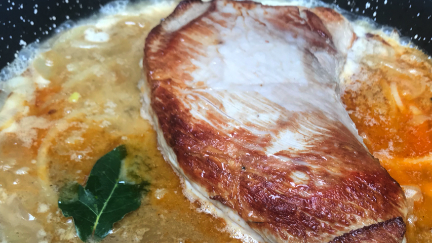 Sirve la salsa y coloca sobre ella los escalopes de carne.