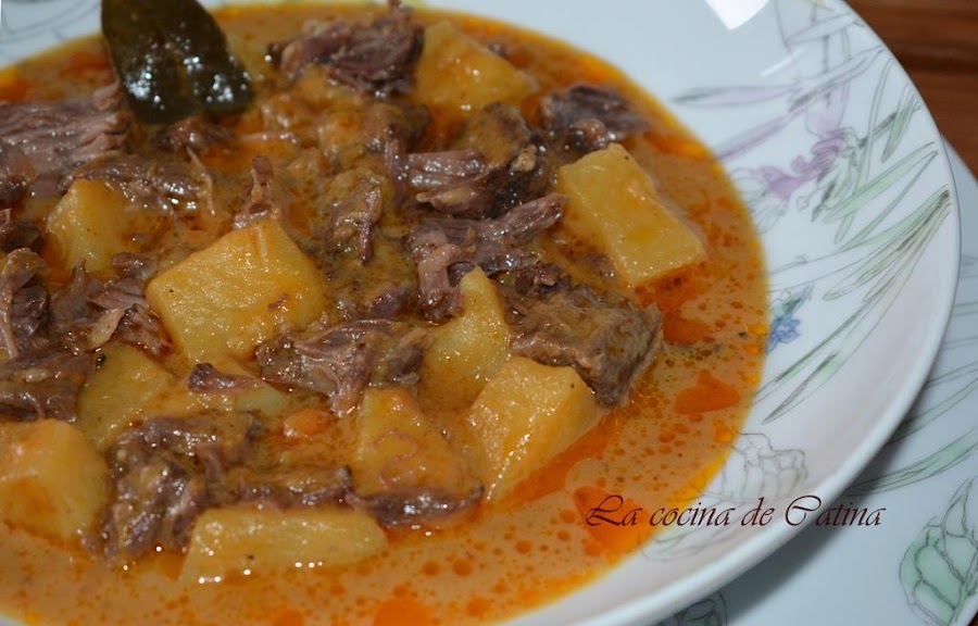 Una vez las patatas cocidas, echamos a la cazuela la carne de buey limpia, cocemos un par de minutos para que se mezclen todos los sabores y dejamos reposar un rato antes de servir.