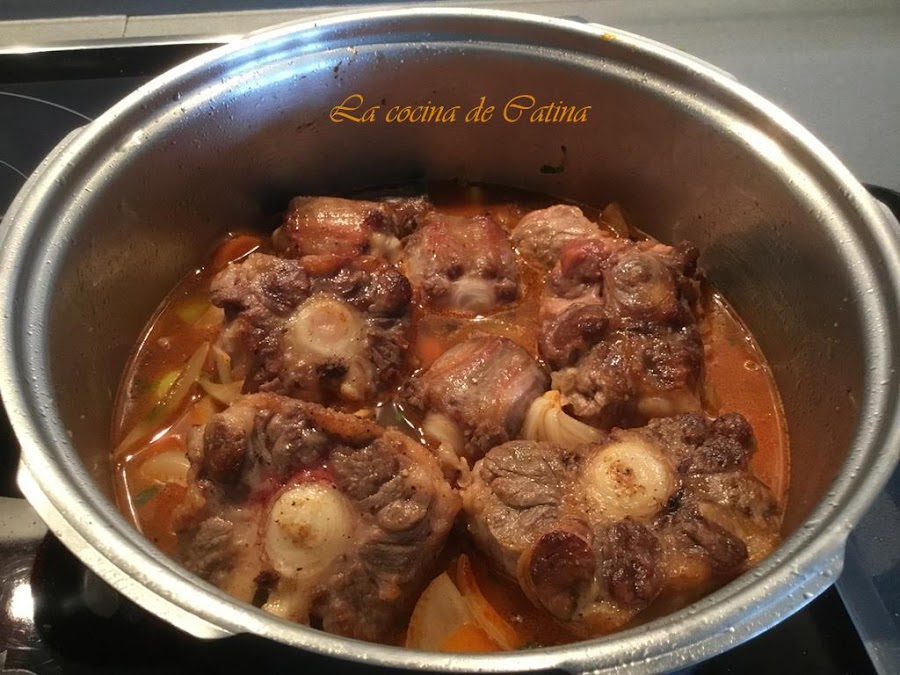 Incorporamos el rabo que tenemos reservado, dejamos reducir unos minutos y cubrimos con agua templada o caldo.