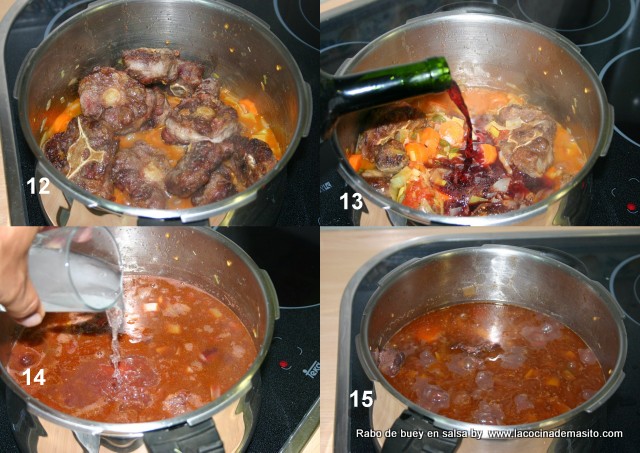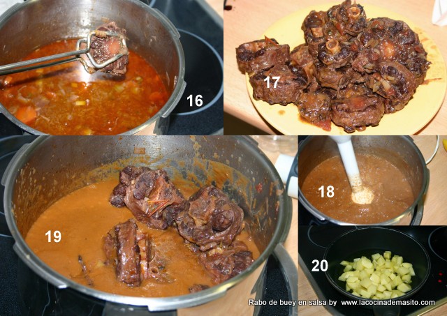 16 y 17- Cuando la carne este ya tierna que prácticamente de deshace del hueso, con mucho mimo la sacamos y la reservamos en un plato