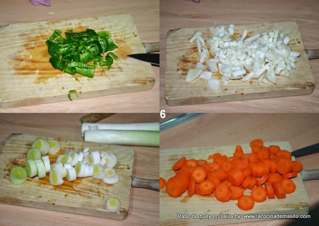 6- Picamos todas las verduras...pimiento, cebolla, puerros y zanahorias y empezaremos a hacer el sofrito