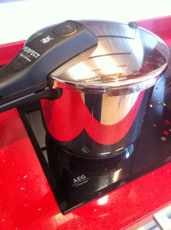 Unas vueltas mas, y cerraremos la olla, poniendo el fuego al máximo hasta que la válvula suba.