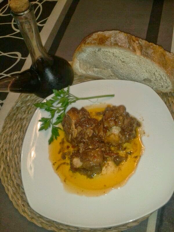 Os traigo una receta como digo yo, de esas que necesitan su tiempo para degustarlas. Un plato consistente, de tenedor y cuchillo, y porque no, de dedos...si si, habéis leido bien. De comer incluso con las manos !!!