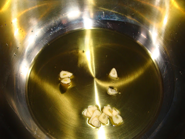 Ponemos a calentar el aceite en la olla rápida y añadimos los ajos.