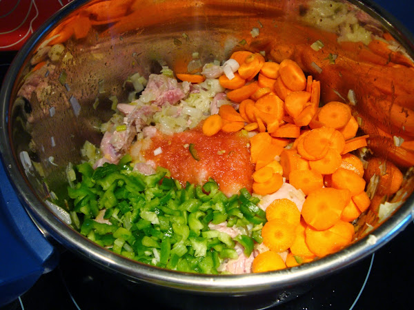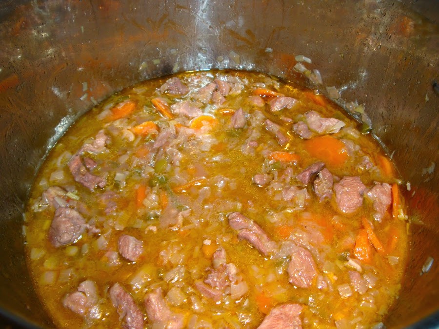 La carne se puede variar entre carne de ternera para guisar, o en este caso como utiliza ella carne de pavo.