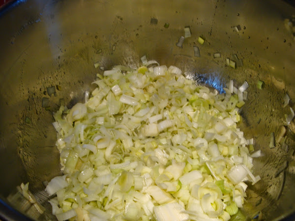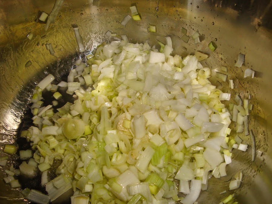 Después añadimos los puerros y la cebolla.