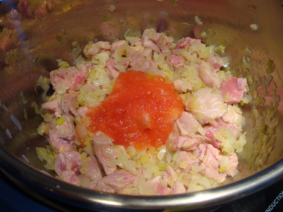 En el caso de que queráis añadir los guisantes se abriría la olla rápida en los últimos momentos y se añadirían para que no se desagan.
