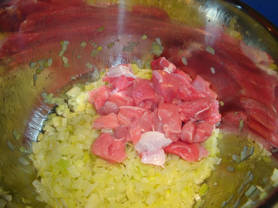 1 kg de carne de ternera para guisar en nuestro caso como os decía es carne de pavo una bandeja de la que venden en el mercadona ya troceada.