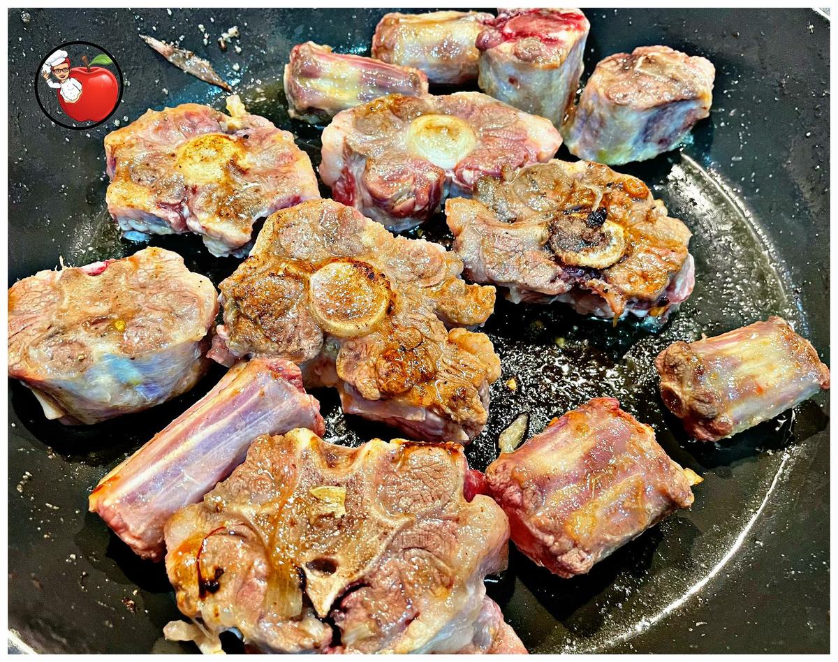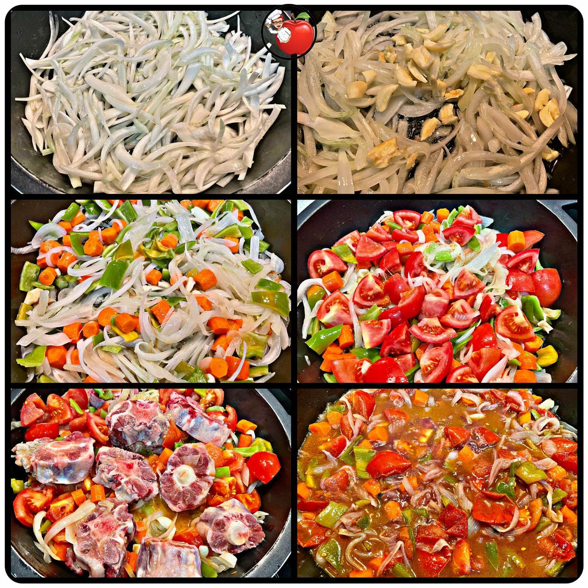 Ahora añado el rabo de ternera por partes porque todo no me cabía para que coja el sabor de la verdura y volvemos a sacar y reservamos.