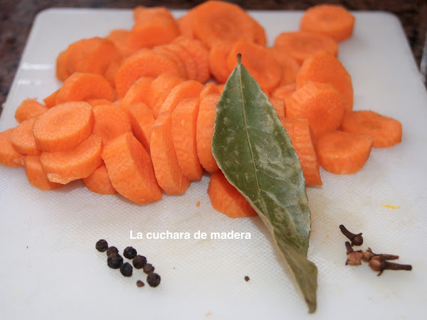 Pelamos, lavamos las zanahorias y cortamos en rodaja,