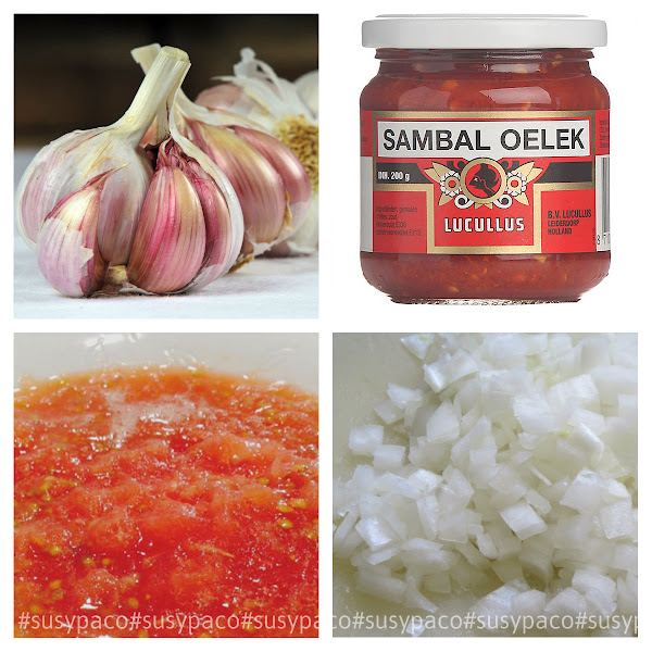 Rectificamos de sal y añadimos Sambal Oelek al gusto, recomendable ir probando para no pasarnos de picante. Claro que puedes usar cualquier otro picante que te guste, pero este tiene un toque dulzón que le dá un punto especial.