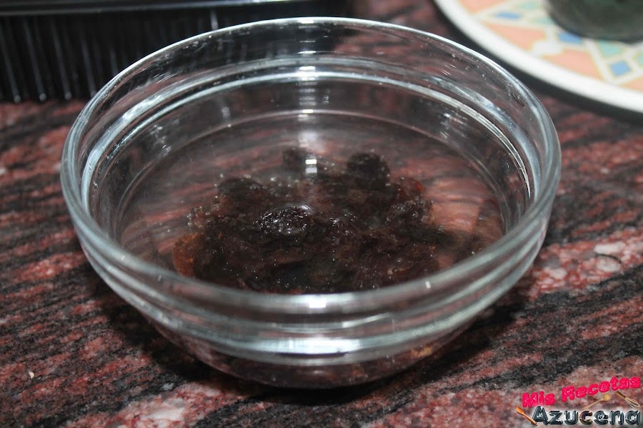 Lo primero que haremos será poner las pasas en un cuenco pequeño con agua para que se hidraten.