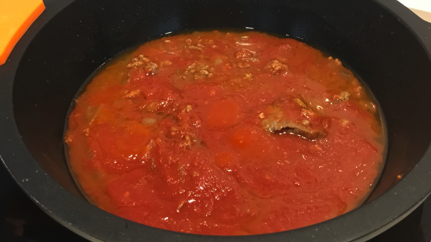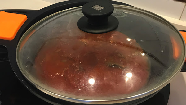 Baja el fuego (yo lo pongo en el 3/10), tapa sin llegar a tapar totalmente y deja que se cocine durante 3 horas.