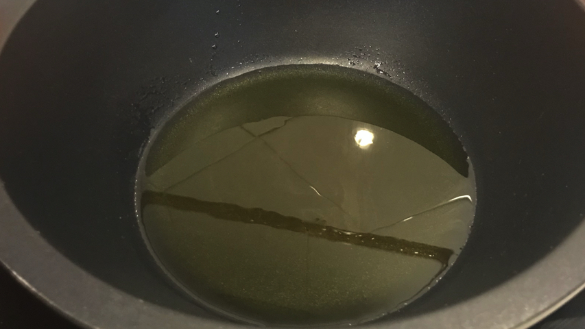 Prepara una olla con abundante aceite de oliva a fuego alto.